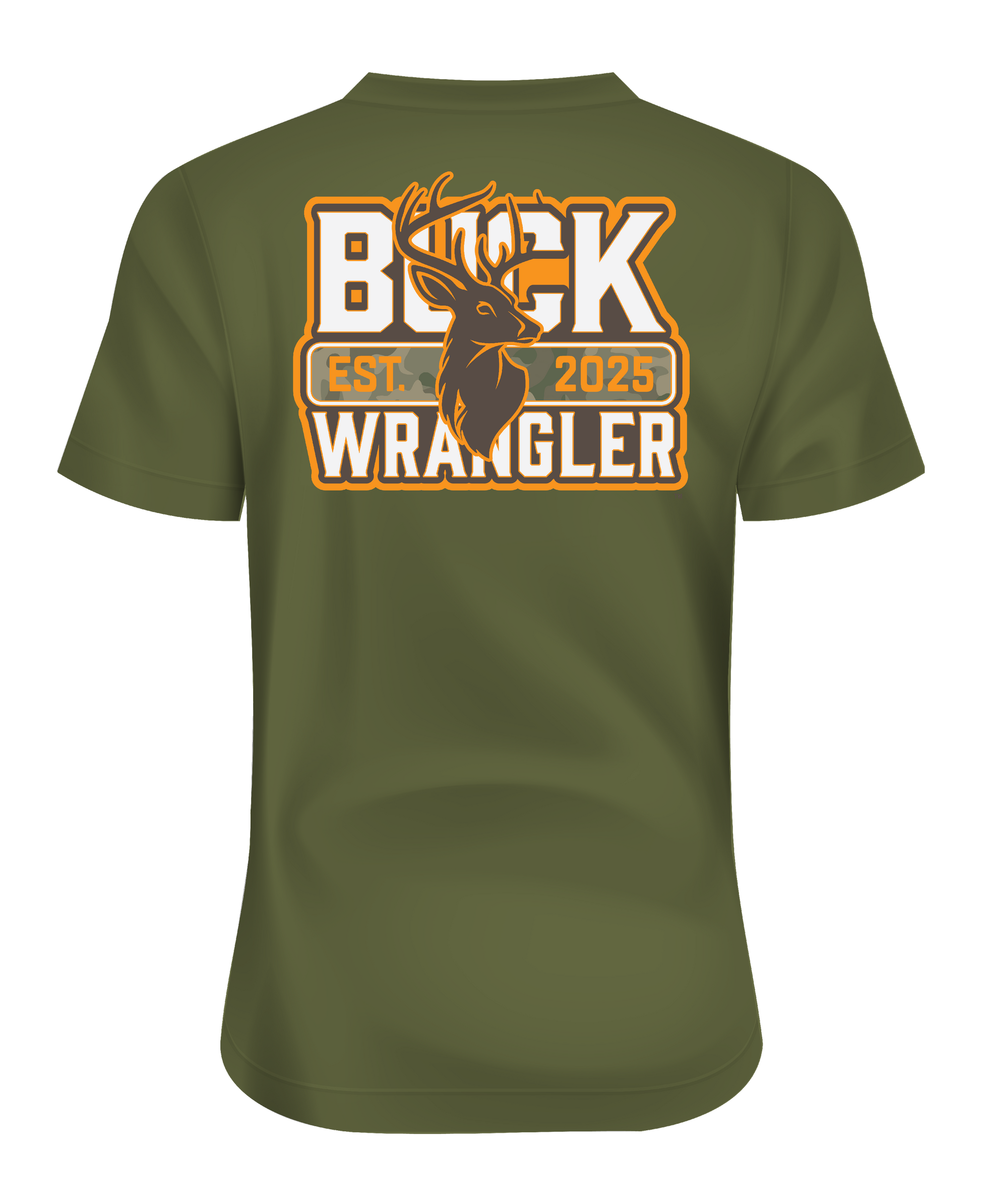 Take on the wild in our bold Buck Wrangler short-sleeve dry-fit tee — built for those who track, scout, and thrive in the great outdoors. Whether you’re deep in the woods or chasing your next big adventure, this shirt delivers breathable comfort with high-performance, moisture-wicking fabric that keeps you cool and ready. Featuring a vintage-style “Buck Wrangler” graphic front and center, it’s the perfect fit for hunters and anyone who carries a little wild in their soul. This isn’t just a shirt — it’s a way of life.